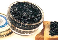 Beluga Huso huso. These large sturgeon are now extremely rare. Beluga eggs are the largest and are light grey to nearly black with a fine skin that melts in the mouth. The flavor is delicately fishy.