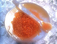 Almas Golden caviar types. Either the eggs of the albino sturgeon or those of an Oscietre sturgeon, which is at least 60 years of age. The flavors, respectively are light and delicate or creamy and subtle.